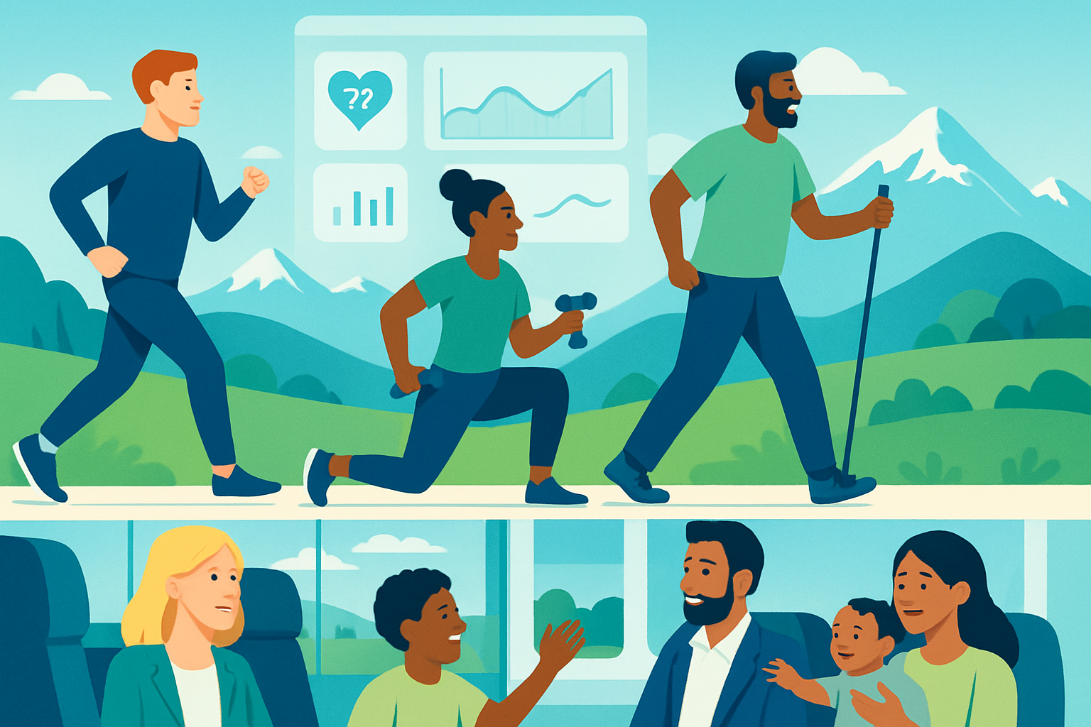 Visual design development for Cloud Medical website featuring human-centered visuals, modern clean aesthetic, bright and optimistic tone. Key design elements include: people moving and interacting with family, elevated healthcare feel distinct from insurance carriers, social proof integration with Heads Up Health dashboards showing biomarker results. Logo adaptation work to incorporate M shape (Twin Peaks, EKG symbol, CM initials, mountain symbolism) while maintaining CloudX globe/X-sphere design for premium tier. Design must create cohesive visual experience across both service tiers while clearly differentiating CloudX premium positioning.