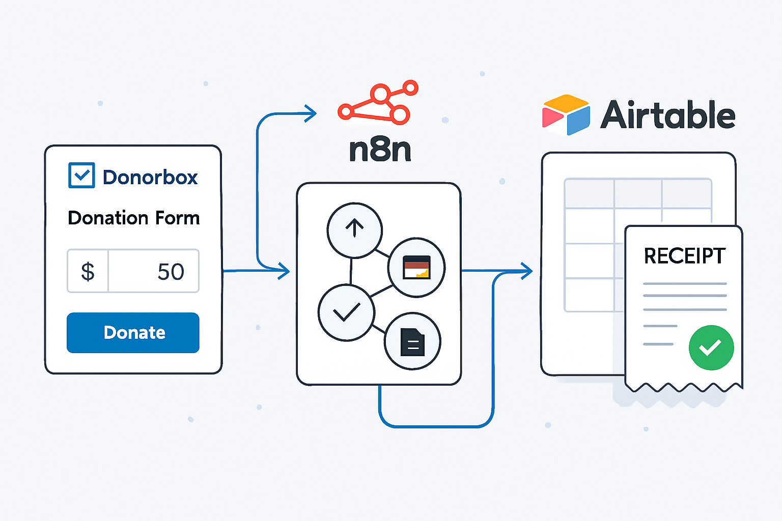 James Redenbaugh: Yeah. Well, I've almost got the NAD web hook to air table working. I think I just need to test a couple things when we get off this call and then maybe we could do some tests, send some $1 donations through and see how they, how they come up. And then the idea, my idea is. In N8N instead of creating a, a web, a workflow for every thing we want to automate, like we have in Zapier, we have one big workflow so we have multiple inputs and multiple outputs. So we have Donor Box coming in, but then also. Registrations and anything else coming in. And then that can be processed to automatically create a donation or a purchase in Airtable. But it could also be used to do the same in Odoo if we, if we want to go with that. It can also be used to automate emails. I think that when people donate via Donor Box, the email that they get as a confirmation is fine. And if the Airtable donor receipt is working for that once a year thing, then that's, that's great. If it's not sufficient, then we can make a different N8N automation to, to create those, those receipts and email them out to people.
