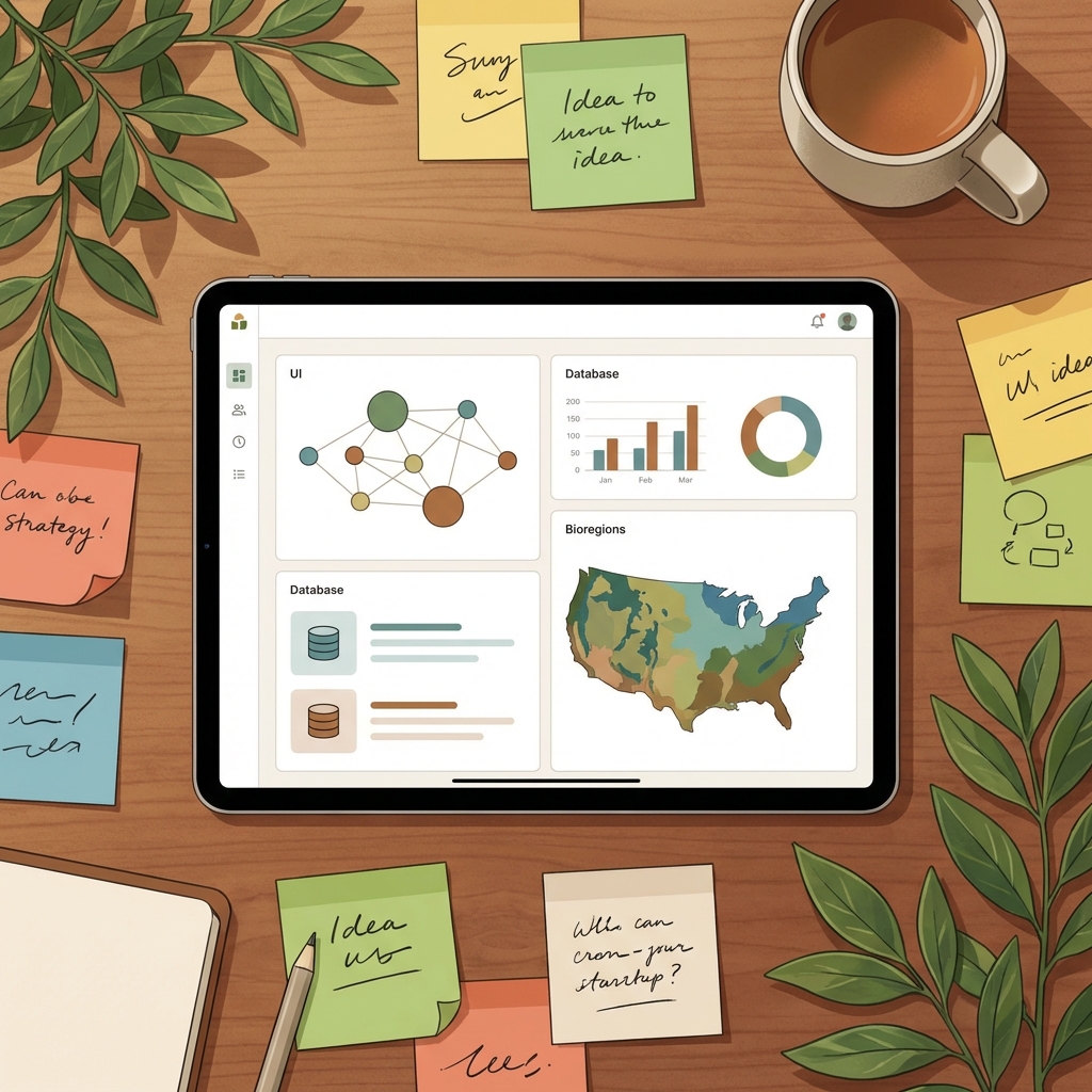 Towns and bioregions were added as dedicated tables to support location-based filtering (00:48:55). James noted that bioregions are particularly meaningful for this community — towns in the same bioregion share agricultural, ecological, and cultural context that a country or state designation wouldn't capture. He has a world map of bioregions ready to help seed this table with sensible boundaries.