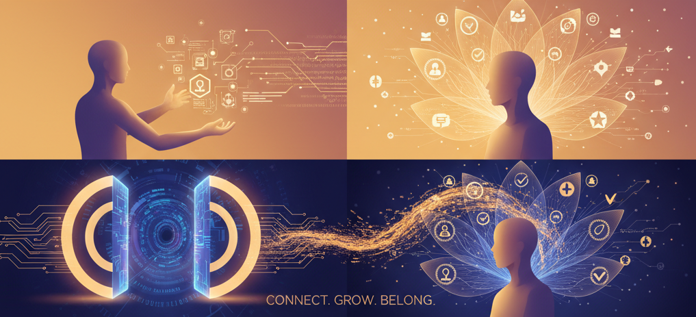 Assessment Integration: Rather than requiring all assessment questions upfront, the system will offer progressive engagement. Members can start with a basic five-minute profile setup (name, website, purpose statement, location), then complete more detailed assessments later. Each completed assessment adds elements to their profile and unlocks new features (26:23).