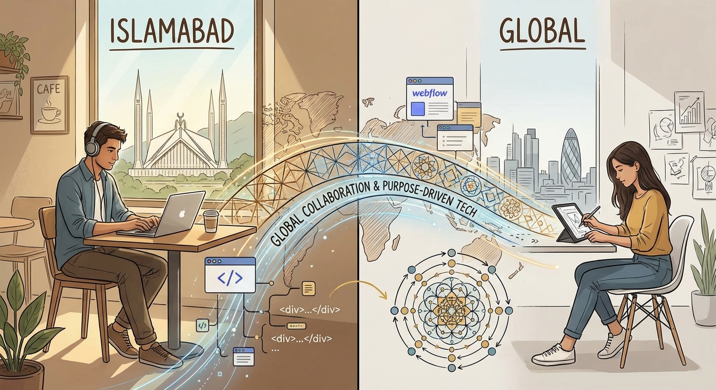 James Redenbaugh and Siam Khan connected through Apollo.io after Siam searched for Webflow [tag="webflow"] agencies as part of her lead generation strategy (04:44). Siam is a 22-year-old developer based in Islamabad, Pakistan, with four years of experience spanning custom web development (React.js, Next.js) and Webflow [tag="webflow"] specialization. She began as an intern at a Belgian company, where she introduced Webflow [tag="webflow"] as a solution for rapid landing page development in the services sector. Over three years, she trained 3-4 team members on the platform while simultaneously building a freelance practice with German and Swiss clients, managing full project ownership including design coordination, development, and client communication.